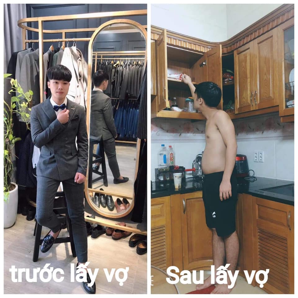 Thực ra đây là một câu chuyện vui mà tài khoản facebook N.N. đăng tải trên group chuyên dành cho các ông chồng. "Đây là album trước và sau khi dại dột của em! Ngày xưa chim anh hót véo von, từ khi gặp em đã héo mòn", anh N.N. hóm hỉnh viết. Theo anh, từ thời điểm "dại dột" lấy vợ, trông anh "tã" và "xổ" người hơn hẳn.