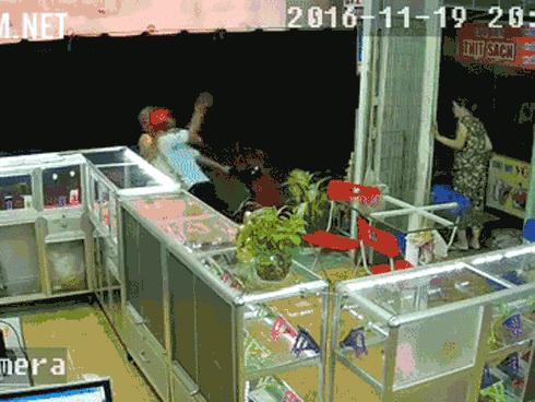 Một nam thanh niên bước vào cửa hàng hỏi mua điện thoại nhưng ngay khi được ông chủ đưa chiếc iPhone 6, đối tượng nhanh tay đút điện thoại vào túi và chạy ra xe máy dự định bỏ trốn. Clip ghi lại cảnh ông lão 70 tuổi đã quật ngã tên cướp đang thu hút sự chú ý của người xem. Vụ việc được cho là xảy ra ở Vĩnh Long.