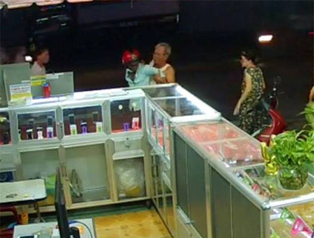 Tuy nhiên ông chủ cửa hàng 70 tuổi đã kịp thời chạy ra tóm cổ, quật ngã tên cướp và tri hô người dân gần đó tới giúp sức và vây bắt đối tượng.