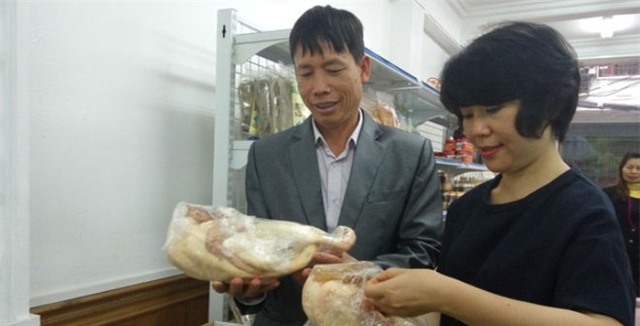 Ông Vươn đang giới thiệu sản phẩm vịt sạch. |