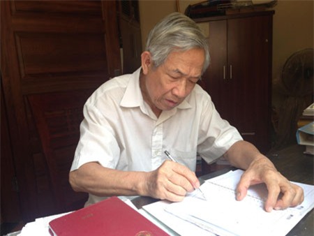 Dù đã 83 tuổi nhưng ông giáo Nguyễn Trà vẫn tận tình dạy chữ cho các em. |