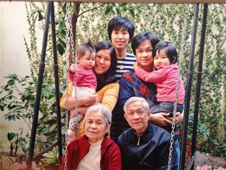 Ông Trà chụp ảnh lưu niệm cùng con cháu trong gia đình – những người sát cánh bên ông duy trì lớp học miễn phí. |