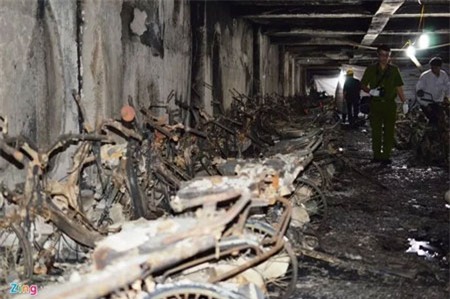 Toàn bộ xe máy tại hầm để xe dưới đế tháp A và một phần tháp B của chung CT4 của khu đô thị đã bị thiệu rụi. Theo thống kê sơ bộ, khu vực này có khoảng hơn 300 xe máy và 1 ôtô bị cháy.