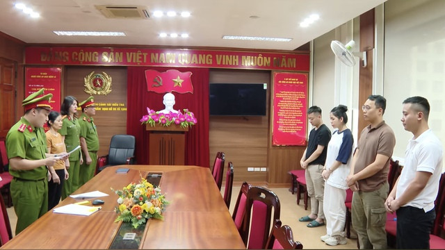Cơ quan điều tra tống đạt các quyết định tố tụng với các đối tượng (Ảnh: Bộ Công an).