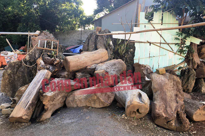 Bên ngoài và trong nhà đối tượng Nguyễn Thanh Tuân có rất nhiều gỗ quý