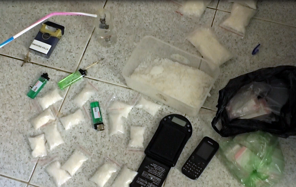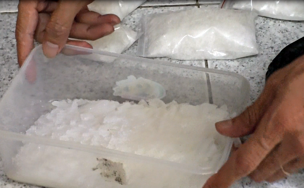 Một lượng lớn ma tuý "đá" đang được Thọ phân lẻ để chuẩn bị mang đi tiêu thụ...