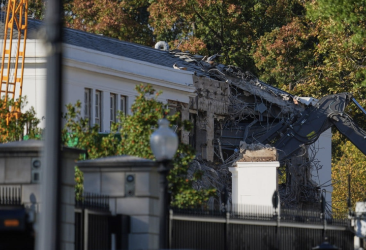 Nhiều người cũng nhìn thấy thiết bị xây dựng lớn đang phá hủy mặt tiền của tòa nhà, một phần của khu phức hợp Nhà Trắng, nơi có văn phòng của đệ nhất phu nhân, một nhà hát và lối vào dành cho khách chào đón quan chức nước ngoài.