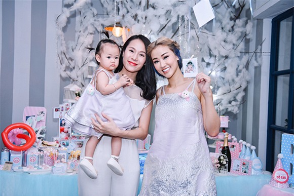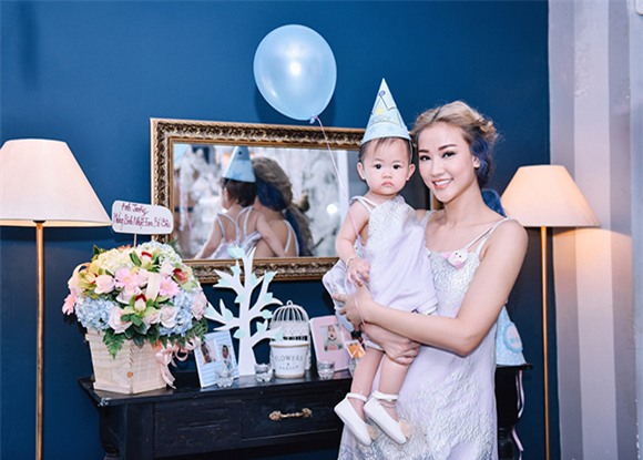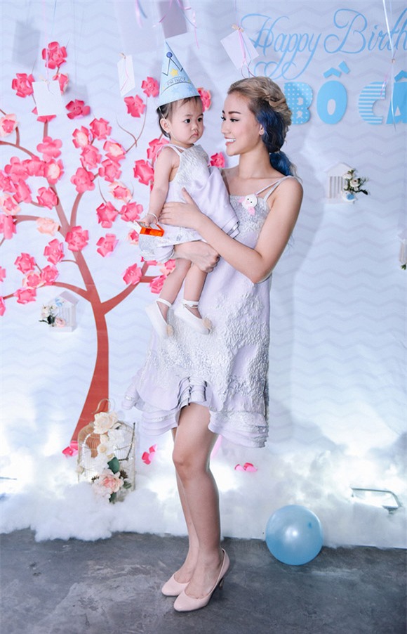 Maya hạnh phúc bên con gái đầu lòng trong ngày sinh nhật mừng bé tròn 1 tuổi. Maya và bé Bồ Câu gây ấn tượng với mọi người xung quanh khi diện chiếc váy cách điệu.