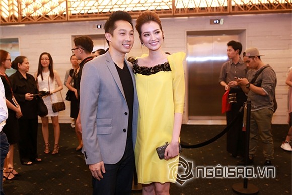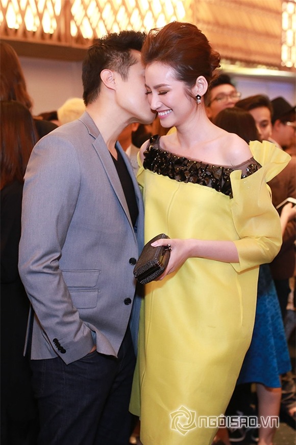 Trong chiếc váy ngắn form rộng của NTK Quang Nhật, người đẹp thu hút ánh nhìn. Không những thế, cặp đôi còn khiến không ít khách mời ganh tỵ khi John Từ bất ngờ ôm hôn cô vợ xinh đẹp rất ngọt ngào trước mặt đám đông.