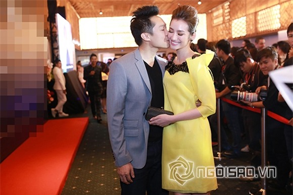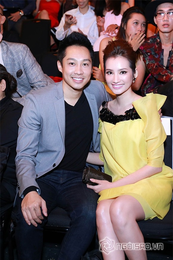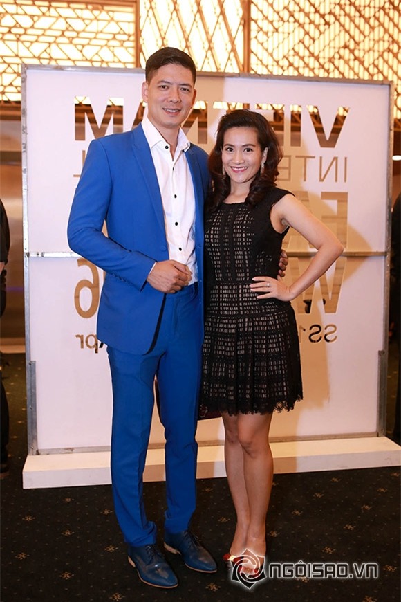 Vợ chồng Trúc Diễm thể hiện tình cảm trước rừng ống kính của giới truyền thông tại đêm thứ 2 của 'Vietnam International Fashion Week'.