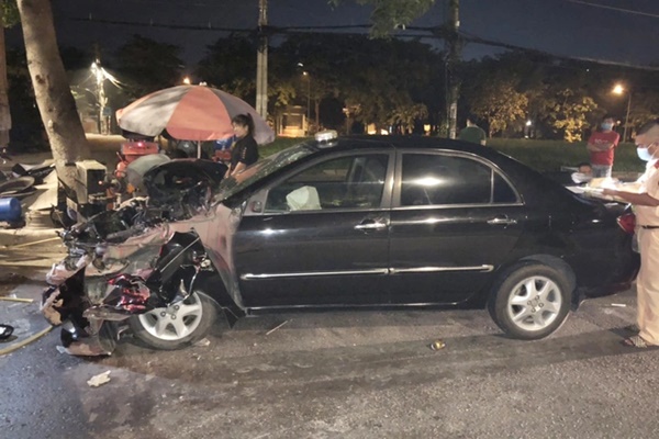 Cú va chạm khiến người đàn ông vá vỏ xe bị thương, được người dân đưa đi cấp cứu. Đầu ôtô con bể nát, hư hỏng nặng, nam tài xế may mắn không bị thương.