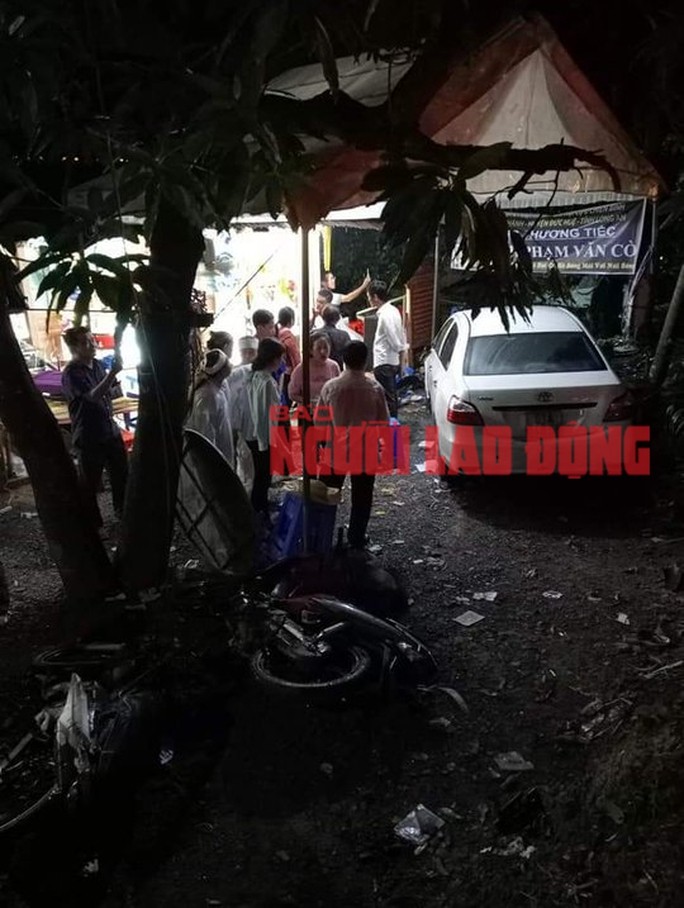 Trước khi lao vào rạp đám tang (cách đường hơn 10m) và dừng lại thì ôtô đã đâm vào một số xe máy dựng phía ngoài. Tại hiện trường, ôtô gây tai nạn và một số xe máy, bàn ghế bị hư hỏng nặng.