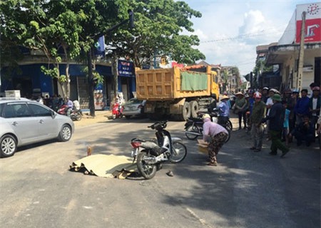 Đang chạy trên đường, bà Yến bất ngờ bị xe tải tông ngã xuống đường và cán tử vong.