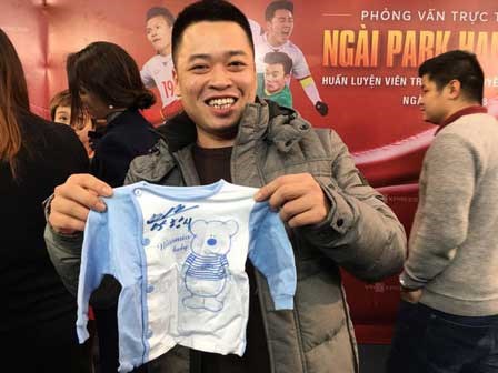 Ông bố tranh thủ nhất năm, vừa tác nghiệp xong liền "bon chen" xin chữ ký HLV Park Hang Seo cho con trai sắp chào đời