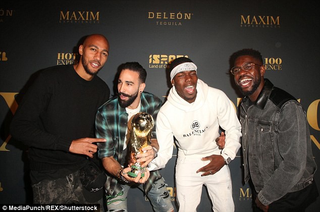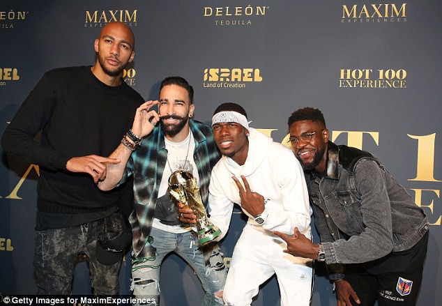 Ngôi sao 25 tuổi cùng một số đồng đội tại đội tuyển Pháp đã mang chiếc Cup vàng thế giới vừa đạt được đến Los Angeles để ăn mừng.