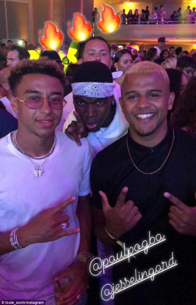 Sau các hoạt động giới thiệu về chiếc cúp, Pogba lựa chọn hộp đêm để giải trí và anh nhanh chóng bắt gặp người đồng đội trong màu áo Manchester United Lingard