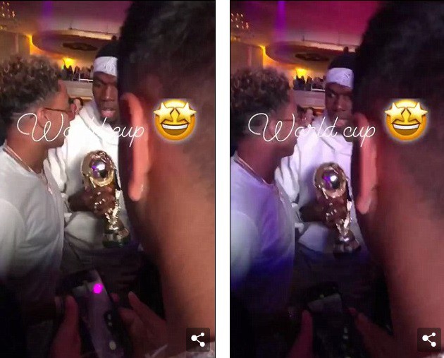 Chỉ là bản sao nhưng chiếc cúp vàng mà Pogba đồng đội mang theo đã mang đến sự phấn khích cho rất nhiều người hâm mộ.