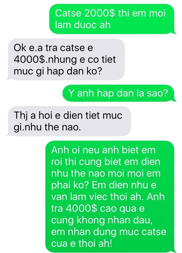 Dù bị Pha Lê từ chối nhưng người đàn ông này vẫn chưa chịu dừng lại mà tiếp tục trả cô cát-xê lên đến 20.000 USD (khoảng 450 triệu đồng) kèm điều kiện diễn xong cho anh ta “vui vẻ” một chút.