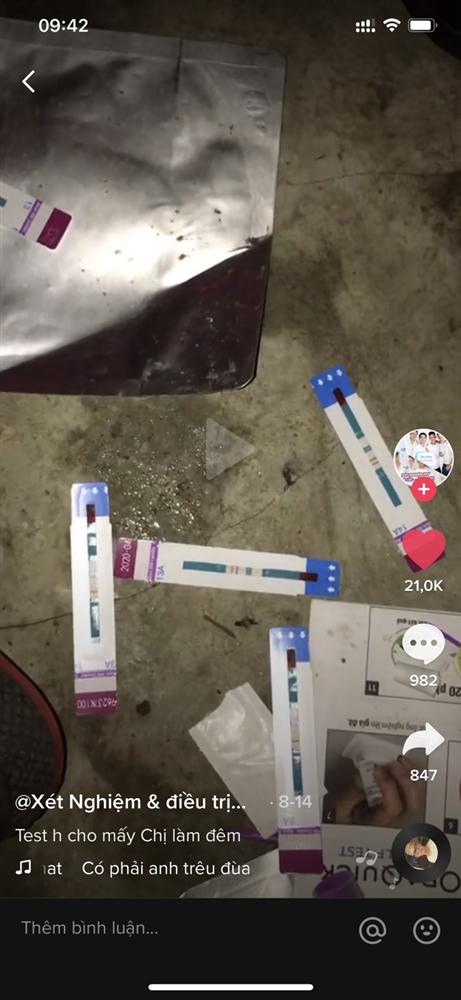 Cụ thể là tài khoản Tiktok có tên "xét nghiệm & điều trị HIV free" đã đăng tải video ở dưới đất có rất nhiều que thử 2 vạch đỏ cùng với nội dung là "test H cho mấy chị làm đêm", nhưng có lẽ vì quá mong con nên chị em đã không kịp nhìn kĩ tên tài khoản và nội dung bên dưới clip mà vội vàng vào comment: "Em xin ít vía 2 vạch bỏ bụng".