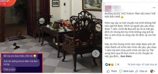 "Hôm nay xảy ra một chuyện mà mình không thể nào ngờ tới được. Mình và người yêu yêu nhau được 1 năm, đã đưa anh ấy về ra mắt gia đình rồi nhưng bố mẹ mình không ưng anh ấy lắm vì anh chưa có công việc ổn định, lại còn hơi thô lỗ.
