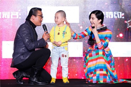 Trong buổi ra mắt giới truyền thông, Phạm Băng Băng rất thích thú khi gặp cậu bé 3 tuổi Hào Hào từng khiến dân mạng phát sốt vì tài nhảy múa tại Amazing Chinese năm ngoái.