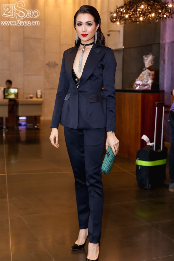 Á hậu Lệ Hằng lại đầy cá tính với bộ vest đen khoe vòng một