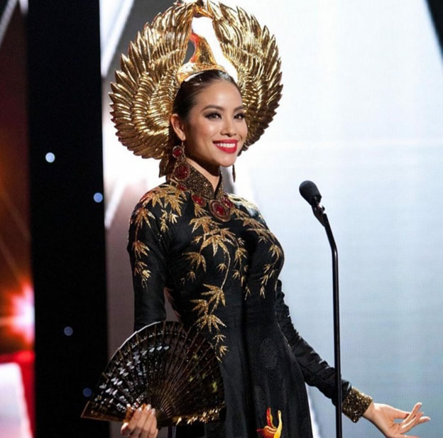 Phạm Hương đẹp lộng lẫy trong trang phục áo dài mạ vàng tại Miss Universe