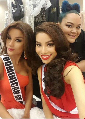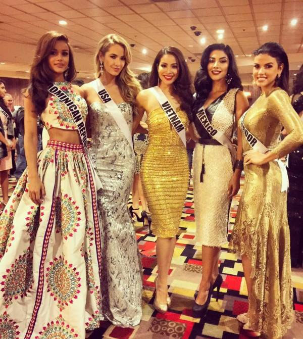 Nhan sắc của đại diện Việt Nam tỏa sáng khi đứng cạnh những thí sinh khác tại Hoa hậu Hoàn vũ 2015