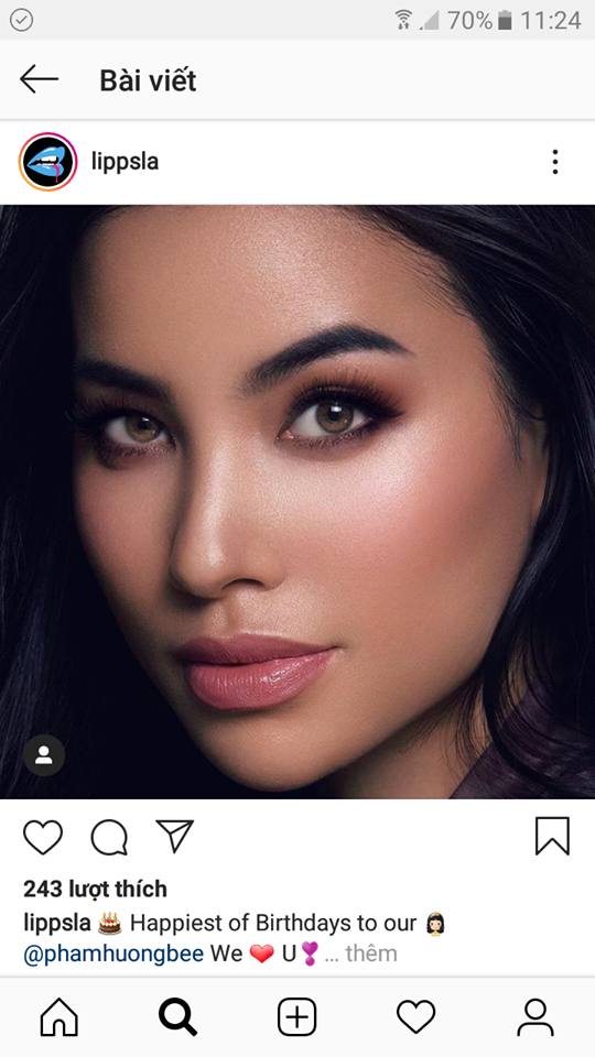 Khoảng một tháng trước, Instagram của LIPPS LA đăng tải bước ảnh của Phạm Hương kèm lời chúc mừng sinh nhật của nữ người mẫu.