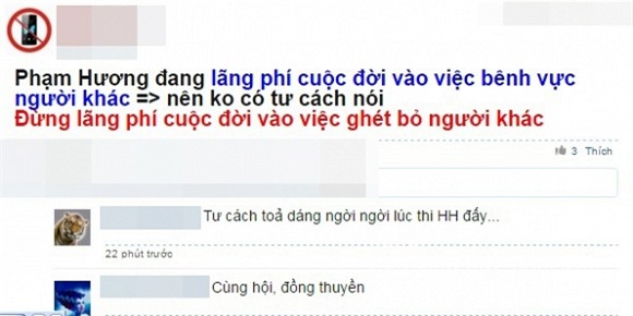Status ngầm bảo vệ Hà Hồ của Phạm Hương nhận được nhiều sự đồng tình ủng hộ của cư dân mạng. 'Đừng lãng phí cuộc đời vào việc ghét bỏ người khác. Cuộc đời này, để yêu thương người khác còn chưa đủ, bởi chúng ta chỉ có một lần để sống...' - người đẹp viết.