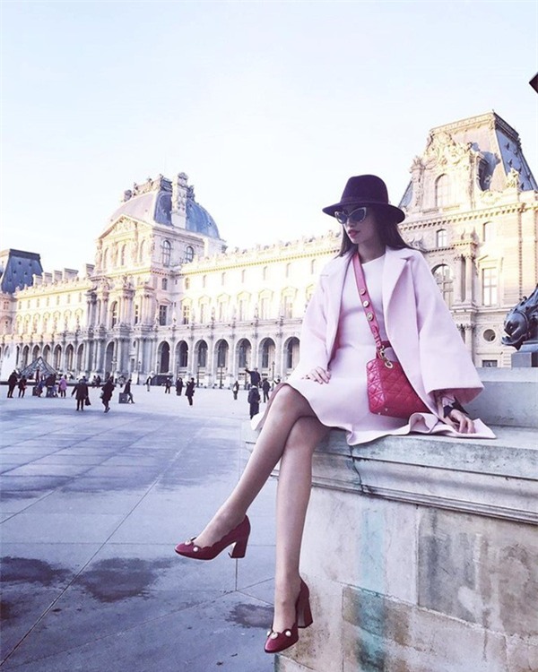 Cô cũng không quên đến thăm và chụp ảnh tại bảo tàng Louvre, cũng là một trong những địa điểm không nên bỏ qua khi tới Paris.