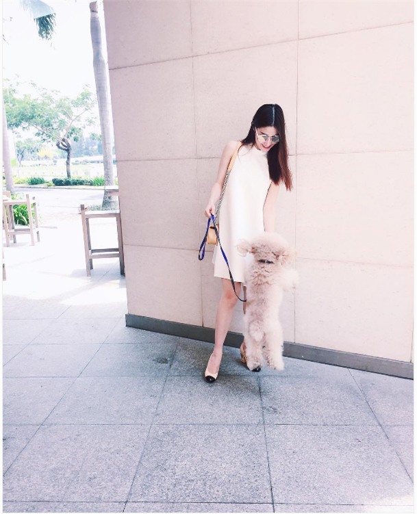 Diễm My lựa chọn chiếc váy trắng dáng suông nhẹ nhàng đơn giản mix cùng túi xách tone màu và giày màu nude.