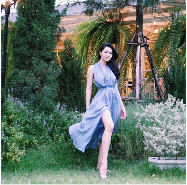 'Ma Thái' Mai Davika sexy với mẫu vẻ xẻ màu xanh thanh bình chuẩn xu hướng 2016.