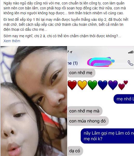 Phạm Quỳnh Anh hài hước chia sẻ trên facebook: “Đi test (kiểm tra) để xếp lớp 1 thì lại may mắn được tuyển thẳng vào lớp 2, đã thuộc hết mặt chữ, biết cách sắp xếp các chữ thành câu hoàn chỉnh, biết cả nhắn tin điện thoại có dấu cho mẹ...”
