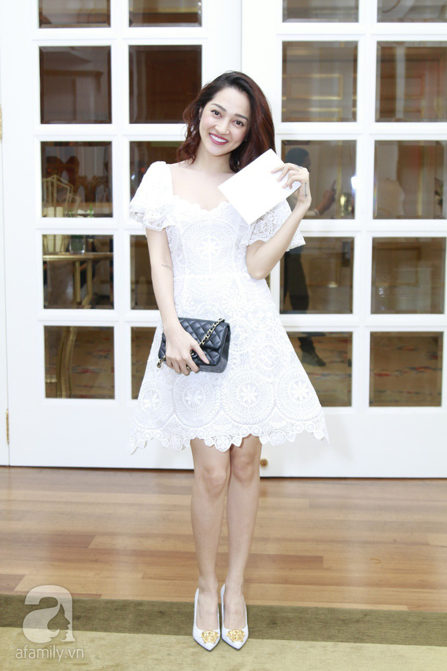 Điều bất ngờ là vào phút chót, Bảo Anh xuất hiện trong chiếc đầm trắng. Kể từ sau ồn ào bị nghi ngờ là kẻ thứ ba chen chân vào gia đình Phạm Quỳnh Anh - Quang Huy, đây là lần đầu tiên Bảo Anh đụng độ đàn chị.
