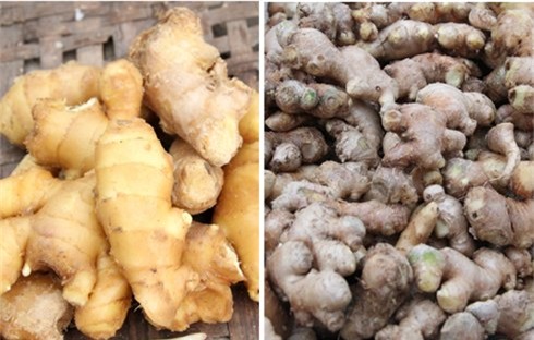 Ảnh trái là gừng Trung Quốc trơn, bóng, mọng nước, ruột vàng, ít xơ, lớp vỏ nhẵn nhụi, căng mọng, củ to, đều, ít nốt sần sùi, được vệ sinh rất sạch sẽ. Gừng Trung Quốc đẹp hơn gừng trong nước nhưng mùi thơm thì thua xa. Gừng ta (phải) tuy xấu mã, nhiều rễ và nốt sần sùi, bẻ đôi củ sẽ thấy có đường gân bên trong nhưng rất thơm.