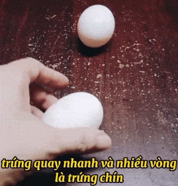 Bây giờ bạn chỉ cần lấy quả trứng ra xoay. Bạn sẽ thấy có quả trứng xoay rất lâu, trong khi đó lại có quả trứng xoay rất một xíu là đã dừng lại.