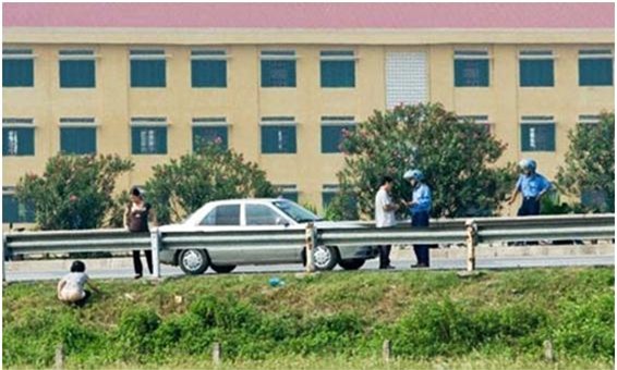 Dừng ô tô tè bậy giữa giải phân cách đông đúc người
