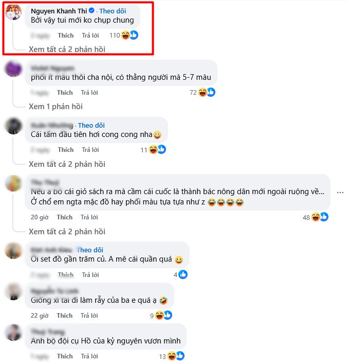 Ngay dưới hình ảnh, Khánh Thi cũng lập tức để lại bình luận hài hước: "Bởi vậy tui mới không chụp chung".