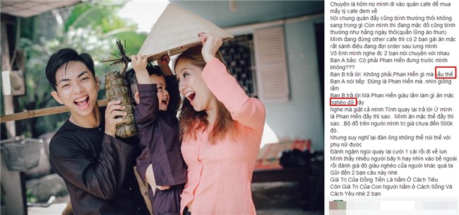 Cách đây ít giờ, Phan Hiển đã chia sẻ bức xúc của bản thân ở cuộc sống đời thường. Theo tiết lộ của ông xã Khánh Thi, anh đã mặc đồ giản dị áo thun quần lửng - tổng giá trị bộ đồ chưa đến 500 nghìn đồng rẽ vào quán ven đường để mua cà phê. Trong lúc xếp hàng chờ đồ uống, Phan Hiển vô tình nghe được cuộc đối thoại của hai bạn gái đứng cạnh.
