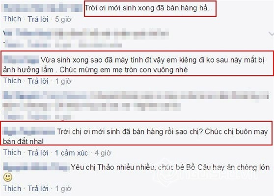 Mới đây, nhiều người bất ngờ khi thấy "gái một con" Phan Như Thảo quay lại với công việc bán hàng trên mạng. Cô còn rất vui vẻ trả lời lại các khách đặt hàng. Tuy nhiên, việc Phan Như Thảo tiếp xúc với màn hình máy tính, điện thoại chỉ hai ngày sau sinh bị nhiều người nhắc nhở: "Trời ơi, mới sinh xong đã bán hàng hả", "Vừa sinh xong sao đã máy tính, điện thoại vậy em. Kiêng đi không sau này mắt bị ảnh hưởng lắm",...