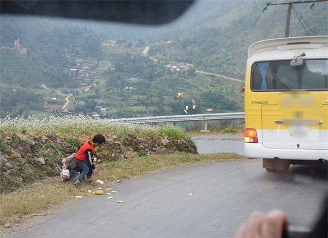 Vài ngày gần đây, trên mạng xã hội xuất hiện một clip (ở Hà Giang) ghi lại cảnh người trên xe khách ném đồ ăn tới tấp xuống đường cho người dân nhặt, đặc biệt là trẻ em.