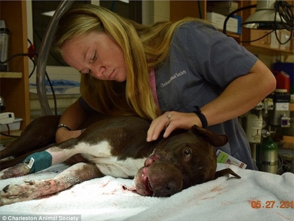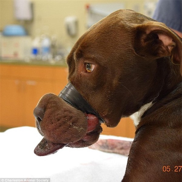 Người dân tốt bụng sau đó ngay lập tức đưa Caitlyn tới trung tâm thú y thành phố Charleston. Con vật tội nghiệp được chẩn đoán bị tắc nghẽn mạch máu và có khả năng phải cắt bỏ một phần lưỡi đang bị hoại tử. Các bác sĩ cho biết có thể mõm của Caitlyn đã bị băng chặt khoảng 3-4 ngày trước. May mắn thay, do sự chăm sóc tận tình của các bác sĩ, cô chó này đang có dấu hiệu hồi phục tốt. Họ sẽ trị liệu cho Caitlyn bằng liệu pháp oxy cao áp và tia laser để giảm thiểu tối đa thương tổn vùng miệng.