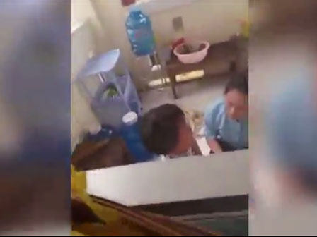Đoạn clip ngắn ghi lại hình ảnh một giáo viên mầm non dùng tay tát mạnh vào miệng trẻ mặc cho em bé đang gào khóc thảm thiết.