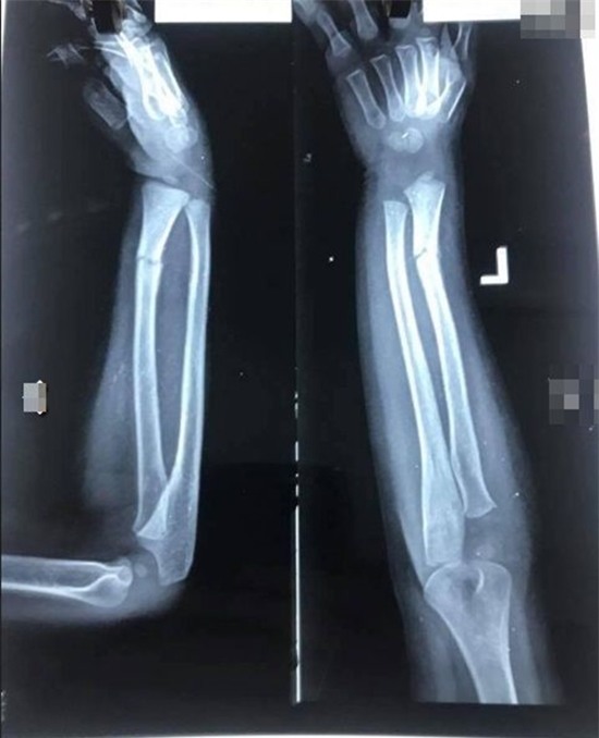 những hình ảnh có thể thấy được tay trái của bé trai bị gãy phải bó
