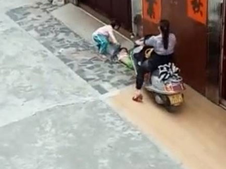 Sự việc xảy ra trong một con hẻm nhỏ ở Dương Giang, tỉnh Quảng Đông, Trung Quốc. Một em bé đáng thương nằm trên nền đất không ngừng khóc bị một người phụ nữ điều khiển xe máy cố tình chèn lên người. Tiếng gào khóc của đứa bé càng làm cho cộng đồng mạng phẫn nộ và đau lòng.