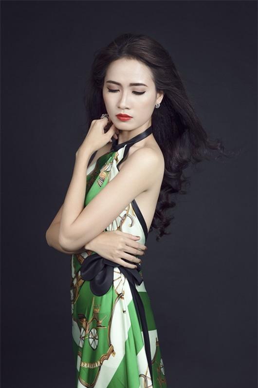 Cô chọn cách trang điểm trong với màu son đỏ đầy lôi cuốn. Đây cũng là lần hiếm hoi Phan Thị Mơ tạo dáng sexy khi chụp hình.