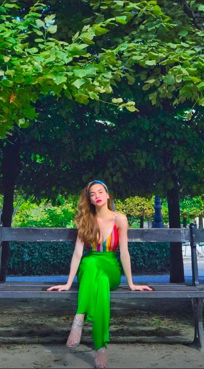 Mới đây, trên story Instagram của mình, Hồ Ngọc Hà đã bất ngờ chia sẻ một loạt ảnh của mình tại Mỹ. Trong ảnh người đẹp diện trang phục vô cùng rực rỡ với áo ba lỗ khoét ngực sâu táo bạo kết hợp cùng quần xanh nổi bật. Để bắt mắt hơn, người đẹp còn dùng một chiếc khăn turban trùng màu với áo tô điểm.