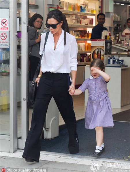 Ngoài ra lần này, Harper có vẻ không thoải mái nên liên tục lấy tay che mặt khi bị phóng viên chụp ảnh. Thỉnh thoảng, cô bé cũng bị bắt gặp phụng phịu, làm nũng với mẹ rất đáng yêu.