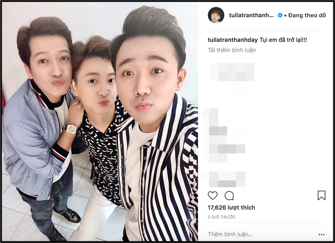 Theo đó, trên trang cá nhân của Trấn Thành đã đăng tải bức ảnh đang cùng nam diễn viên hài xứ Quảng và Ngô Kiến Huy đi ghi hình chương trình mới.
